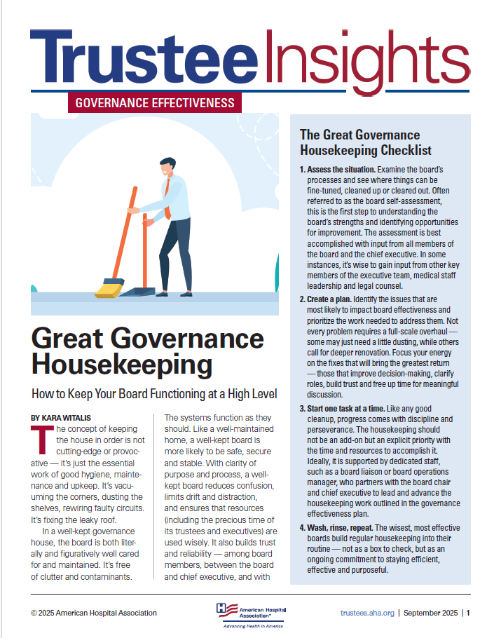 Just as a well-run house doesn’t wait for a storm to fix the roof, a well-governed board doesn’t wait for disruption to update its practices. A well-maintained board is far more likely to ensure a safe, stable, and secure organization.